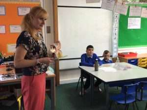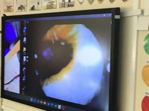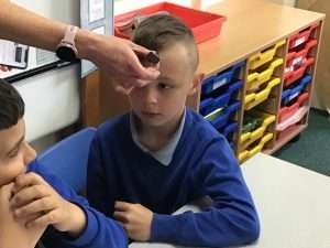 We were very lucky today to have a visit from Claire, an audiologist from the team at NE1 Hear at the Freeman Hospital. Claire talked about the different parts of the ear, let us try a bone-mounted hearing aid, taught us how to look after our hearing and even showed us the inside of one of our ears! She also answered some of our questions about what she likes about her job and how to become an audiologist.