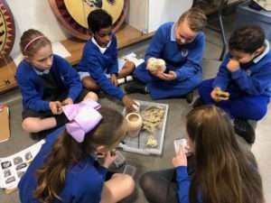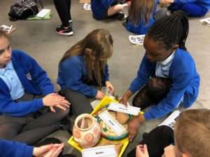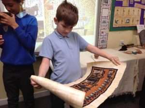 Last week, we were lucky enough to be visited by That History Bloke, who taught us even more about the Ancient Egyptians! We learnt about importance of the Pharaoh, what he wore and how people believed he was the living version of Horus, God of the Sky.  After this, Richard showed us exactly how a body was mummified and we even got a chance to take part! We cleaned the body with white wine vinegar and removed the organs (which were placed in canopic jars).  We spent time studying a range of Egyptian artefacts such as musical instruments, papyrus scrolls and beauty products.  Finally, we learnt to write like the Ancient Egyptians, writing our name in hieroglyphics on cartouches, using ink and a pen made of bamboo.  We really enjoyed our trip to the Great North Museum and visit from That History Bloke and we have learnt lots of interesting (and sometimes unusual) facts during this topic!