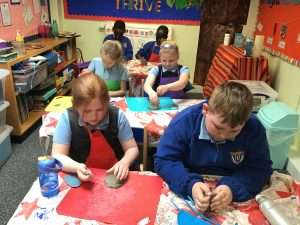 This week, Nurture Group are learning how to work with clay and clay tools to create a nature themed medallion. The children searched the yard for signs of Spring and chose items from nature that would make interesting imprints in their work. We will show you the finished products next week!