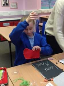 Year 6 have designed Christmas Stockings and were working on the first stage – sewing the felt together.