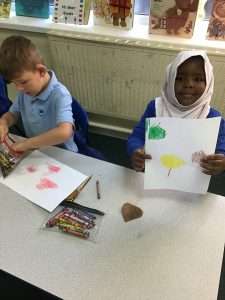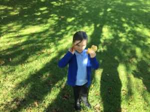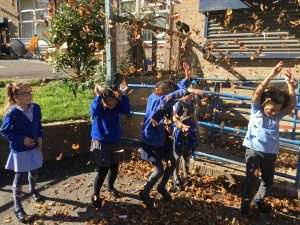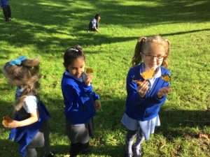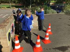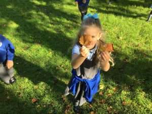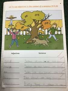 We thought of adjectives to describe the things which we saw, smelt and heard on our Autumn walk.
