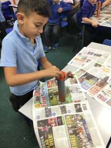 Last Friday we started making our Angel of the North replicas. We chose our own materials from a choice of bases (kitchen roll tubes, empty water bottles) and used a range of materials including tissue paper, cellophane and cardboard and various shades of paint.