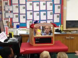 We worked in small groups to write a play about our puppets and then we performed our plays in our puppet theatre.