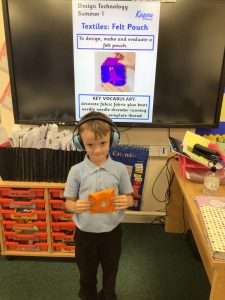 Year 2 have had lots of fun this week designing, making and evaluating their own felt pouches this week in Design and Technology. We firstly practised running stitches on paper and then on a scrap piece of felt. Secondly we progressed onto sewing two templates together to make our pouch. We then designed a motif in a contrasting colour which we stuck on our pouches using PVA glue. Finally, we added Velcro to our product so that the pouch can open and close. We enjoyed evaluating our designs, thinking about what we liked and what we would do differently next time. It was lots of fun to learn how to sew for the first time!