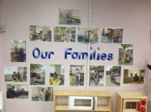 The children enjoy looking at their family photos in the home corner which has helped them to settle at Nursery.