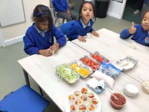 Today we made our own healthy lunch wraps! We worked in groups to taste and evaluate the ingredients on offer. We thought about which foods we already like, and which foods we might want to try. We thought about choosing a combination of foods to create a healthy wrap. We then created our own healthy wrap using the ingredients.