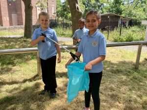On Monday we went litter picking using our new little pickers that were purchased with funds from our Global Action Project. We were joined by Rosie, from Global Action Project and Mrs Villalobos from Nurture Group. We managed to collect lots of litter from our nearby church garden. What an achievement!