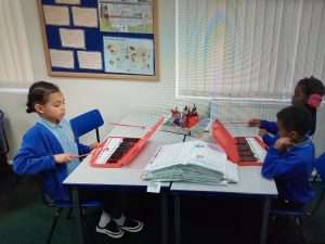This term we have worked in pairs during our first glockenspiel unit! We have thought about how to follow sheet music and to listen carefully to each other. We have learnt the note E during Easy E and D in the piece Strictly D. We have also built up to working as a pair for a duet.