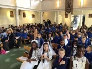 Our school community gathered in Church today to celebrate the next stage of our First Holy Communion children’s Christian journey. Father Johnathon spoke about how the children now have the job of going forth and spreading the Christian message by the way they live their lives. It was wonderful to gather the school community together for a joyful Mass.
