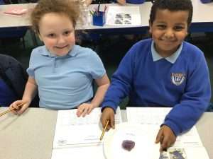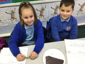 In Year 3 we are exploring ‘Rocks and Soils’ in Science this term. Today we investigated the strength of rocks (hardness test) and also how much water they can absorb. We worked as a class, deciding on a scaled system to judge the strength and water absorption levels. We looked at rocks of all types; sedimentary, igneous and metamorphic. We poured water on the rocks to test absorption levels and examined how much water was left on the paper towel underneath. To test hardness, we used our scaled score and examined the rocks by holding them and hitting them on a surface.