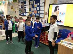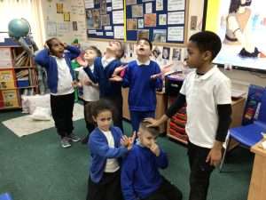 Today we role played the Gospel of Matthew 3:13-17, the story of John the Baptist. We realised we had kind of met John before, when we learned The Visitation story before Christmas, and John’s mum Elizabeth was pregnant at the same time as Mary was with Jesus! Today we talked about Matthew 3:13-17, when John baptised Jesus in the River Jordan. We wondered about how John and Jesus felt.