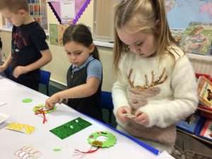 Year 1 and Year 2 joined together to take part in a fabulous Christmas Craft Day. We dressed up in a festive outfit to take part in the fun! We made a whole host of Christmas crafts including; tree decorations, bookmarks, cards, wreaths and calendars.