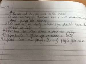 After reading further into the text, we discussed why scrooge disliked Christmas so much and though about how we could persuade him to celebrate Christmas.