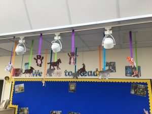 We were inspired by the mechanical animals in the story of ‘Leon and the Place Between.’ We designed and created our own versions. We chose either a lion, tiger, bear, horse or elephant to bring to life. We used cardboard templates, paint and split pins to bring our creations to life. We used black felt tip pens to add detail to our creations.