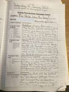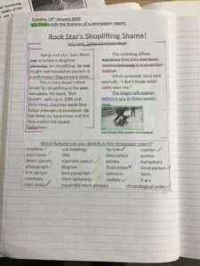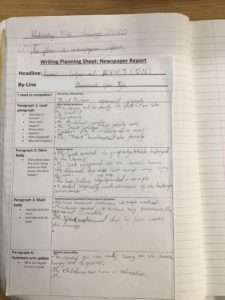 Our next lesson focused on exploring a range of different newspaper reports, which allowed us to get to grips with the genre. We noticed straight away that newspapers always begin with a headline. The headline always has to be catchy and attention grabbing so that readers want to read on! We also learnt about the importance of the lead paragraph; it needs to set the scene and summarise the main points of the article using the 5 w’s (who, what, when, where and why). We then demonstrated our understanding by annotating another example of a newspaper report.