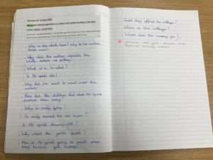 We began by studying chapter 2 of Street Child, titled The Stick Man. As we read, we noted down questions we had about what was happening in the text and why certain events were happening. Here are some fantastic examples of questions we came up with: