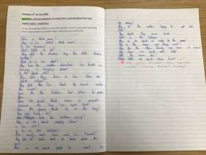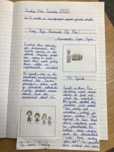 It was time to plan, we couldn’t wait to get started! Our report focused on the poor Jarvis family being evicted from their home by the evil Mr Spink (aka Stick Man). We worked together to create a range of exciting sentences and ideas, which we could use in our report. We made sure to include our grammar focuses for the week: relative clauses, direct and reported speech and adverbs of possibility.