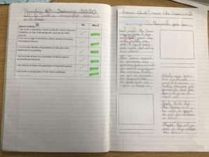 We wrote up our first draft in our writing book, using a green pen to self-edit and improve our work. Miss Davidson also gave us some ‘think pinks’ and a target to further improve our work, so our final draft was the best it could possibly be!