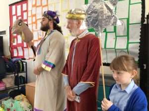 Our friends from Open the Book returned today with their wonderful dramatic versions of Bible stories. This half term, they will be telling the story of Jesus’ life in a number of episodes. Today, they performed the story of the Epiphany and King Herod’s actions towards the Holy Innocents for KS1 and KS2. A number of lucky children were able to take part in the plays too!
