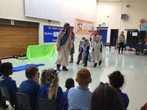 Today was a special day at St Lawrence’s; our special friends from Open The book came into school and acted out the story of The Loaves and The Fishes.
