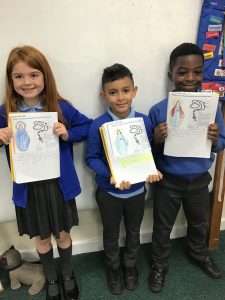 In Year 3 we have been thinking Our Lady Mary. We have also been thinking about the Rosary and look forward to praying the Rosary later this month. To celebrate Mary, we copied out the Hail Mary in our best handwriting and decorated a beautiful picture of Mary.