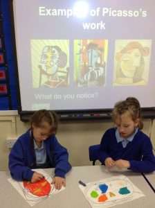 Morgan Fail; an artist from the Laing Art Gallery visited Year 2 as part of our art work about portraits. We looked at the work of the Spanish artist; Picasso. We were able to use what we have already learnt about portraits and develop our own works of art in the style of Picasso!