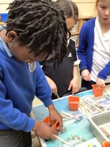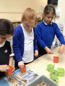 We each planted a sunflower seed today. We had to think about what our sunflowers will need to grow and flourish. We decided that they need water, sunlight and warmth. Four sunflowers will not have access to these vital things. One sunflower will go in the fridge (no warmth), one will not have soil, one will stay in the cupboard (no sunlight) and one will not receive water.