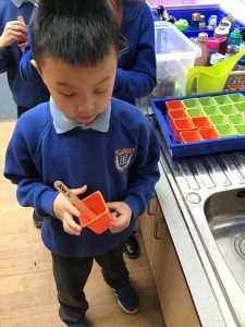 Today we all planted a sweet pea seed. We placed the seed in compost and made sure it had plenty of water to drink. Our seeds need sunlight, water and warmth to survive so we will make sure we look after our seedling every day. We also placed one seedling in a dark cupboard, one in the fridge and another will not have any water. From this we can observe what happens next.
