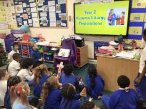 We had a liturgy in Year 2 today. We are thinking about Preparations, particularly how we prepare during Advent for Christmas. We Gathered by quietly bringing our own special pictures of Gold, Frankincense and Myrhh to the focal point. We thought about how this is such a special and important time of year in the Church’s calendar for preparing and getting ready. We also made our own Advent wreaths, thinking about how Mrs Robson lights a special candle every Monday during Celebration of the Word.