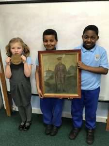 Today Year 3 displayed excellent behaviour and respect during our Remembrance Service lead by Mrs Maxwell with music from Miss McDonnell. We also enjoyed making our own poppies this week which we decorated using oil pastels. They will be part of a whole school display! Miss O’Hare brought in a special painting of her great uncle, John James O’Hare and his death penny medal which has been in her family since the first world war. The medals do not say the rank of the soldier as they are all equal for their bravery. John James died in Ypres in Belgium, near Flanders Field which inspired the famous poem by John McCrae.