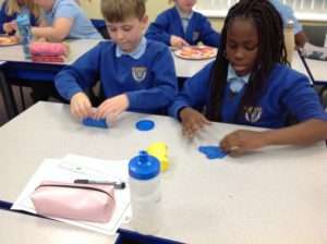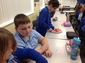 We learnt a range of techniques for preparing ingredients, including cutting and chopping ingredients using the claw and bridge technique, peeling ingredients and kneading dough (using playdough!)
