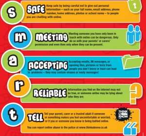 During Safety Week, Year 5 undertook a research project about internet safety. The class discussed the different forms of social media that they used and its potential dangers. The class split into 5 teams and researched the SMART rules for staying safe on the internet. Using these rules as a basis, the class then wrote guides for younger children to follow when using the web. Well done Year 5!