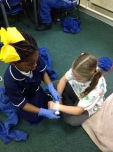We learnt how to use a stethoscope to listen to people’s heart beat and how to use an inspection torch.