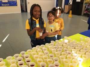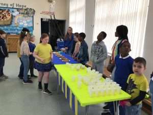 The Mini Vinnie members and the School Councillors sold juice and biscuits to raise money and everyone donated £1 towards the appeal.