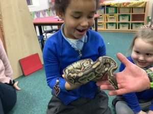 Reception class have been learning about changes in winter and as part of this learning had some very special visitors in class! The children loved the hands on experience of handling different animals including snakes, spiders, rats, giant snails and cockroaches! The class learnt about how different animals survive in the winter, from hibernation to migration.