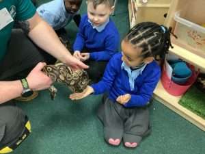 Reception class have been learning about changes in winter and as part of this learning had some very special visitors in class! The children loved the hands on experience of handling different animals including snakes, spiders, rats, giant snails and cockroaches! The class learnt about how different animals survive in the winter, from hibernation to migration.