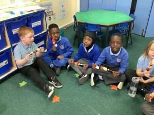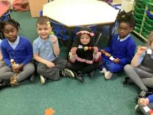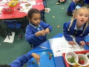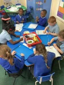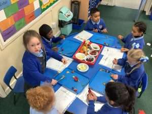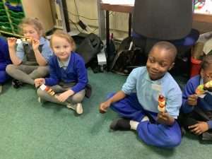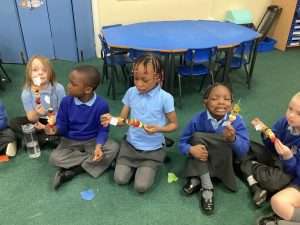 Year 1 have been designing and making their own fruit kebab. After they cut up their chosen fruit and made their kebab, they were able to enjoy their work by eating them.
