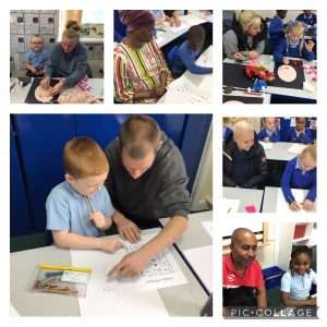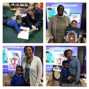 Today Year 2 invited parents to take part in an art workshop as part of our art work this term on portraits.