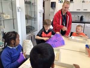 We had a fantastic day at the Shipley Art Gallery. We took park in two workshops creating our own materials. Firstly, we made our own piece of felt using different colours of wool and soapy water. We then made our own mosaic tiles using clay. It was interesting to compare and contrast materials, thinking about their properties.