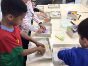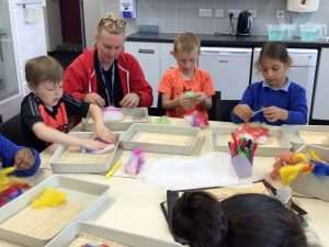 We had a fantastic day at the Shipley Art Gallery. We took park in two workshops creating our own materials. Firstly, we made our own piece of felt using different colours of wool and soapy water. We then made our own mosaic tiles using clay. It was interesting to compare and contrast materials, thinking about their properties.