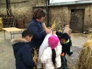 After lunch we made scarecrows to scare the birds away from the crops, we worked in three groups; it was great fun! We gave our scarecrows names!
