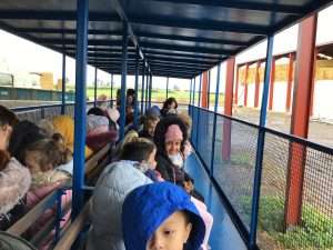Ashleigh showed us how they move the seeds and then we all sat in the large scoop in the tractor!