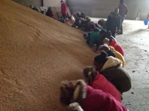 We saw the wheat which had been harvested from the fields and we used a special mill to grind the seeds to make flour.