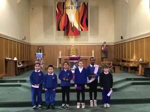 Today we lead and presented Mass in church today. It is our third time and we all really enjoyed the experience. We sang our hymns, ‘Bind Us Together,’ and ‘Walk in the Light,’ beautifully. Every child played an active role, either by taking on a reading, bringing forward the Offertory or a revenant part of the congregation. We invited our adults to come and be a part of the congregation, so many came it was so joyous to have them join us in prayer.
