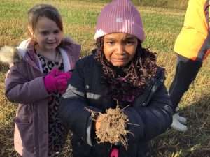We learned all about how farmers like Mr. Thompson grow food that is essential for our diet such as wheat, and how seeds can be milled to make flour. We also learned about the diets of cows, and how they can produce food for us, too. We learned about all the animals and insects that lived in the woodland and under the soil and we created a suitable habitat for our very own pine cone creatures.